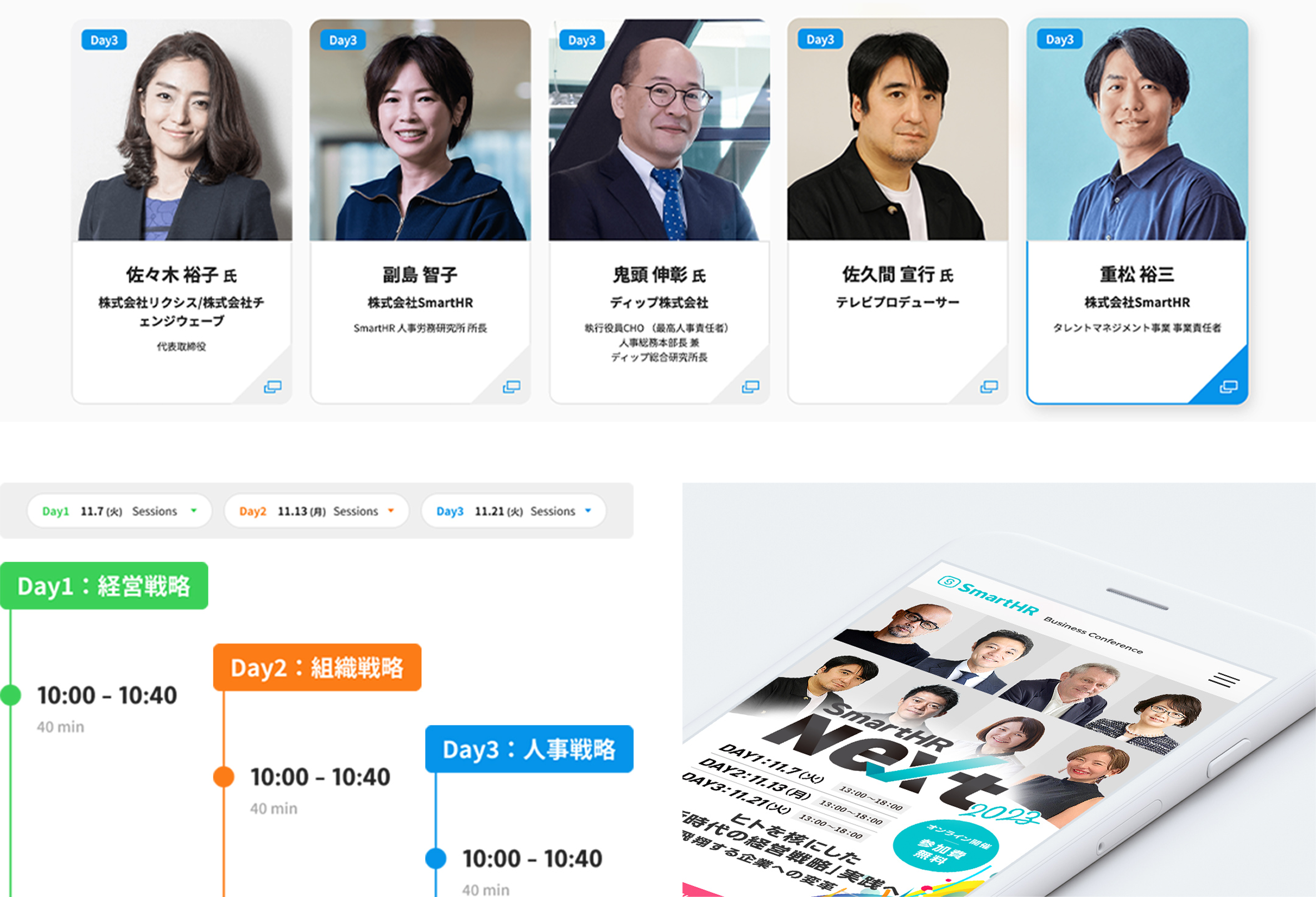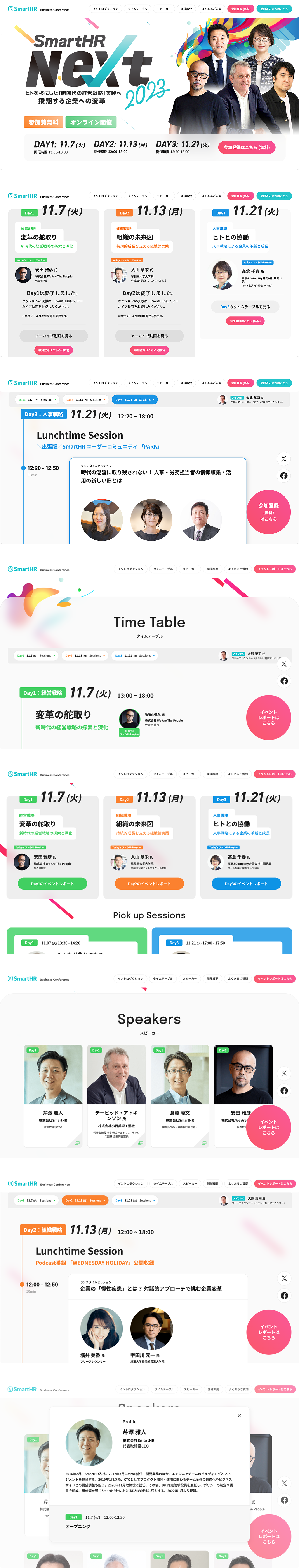 SmartHRが主催するオンラインカンファレンス「SmartHR NEXT 2023」のキービジュアル作成、及び、特設ページ制作を担当しました。