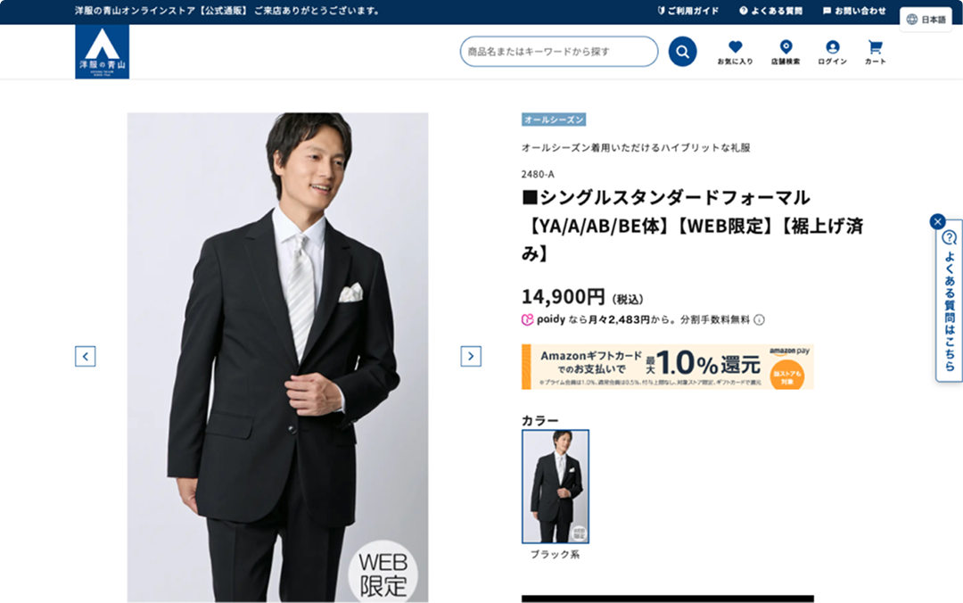 紳士服・スーツ販売数No.1 「洋服の青山」のブランド統合サイトを設計