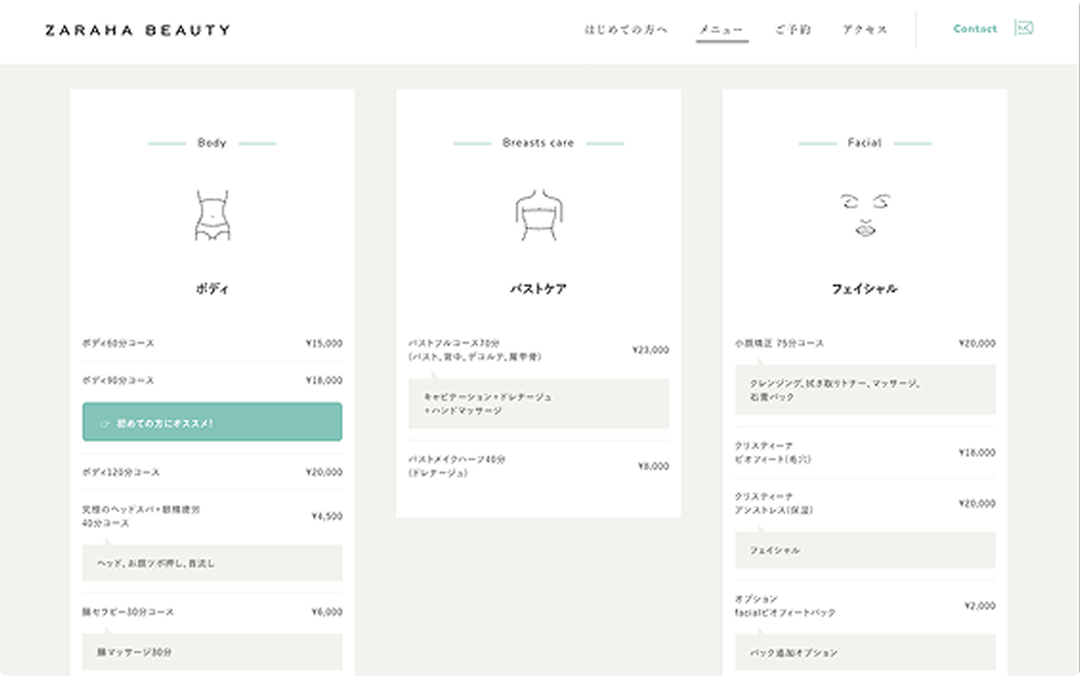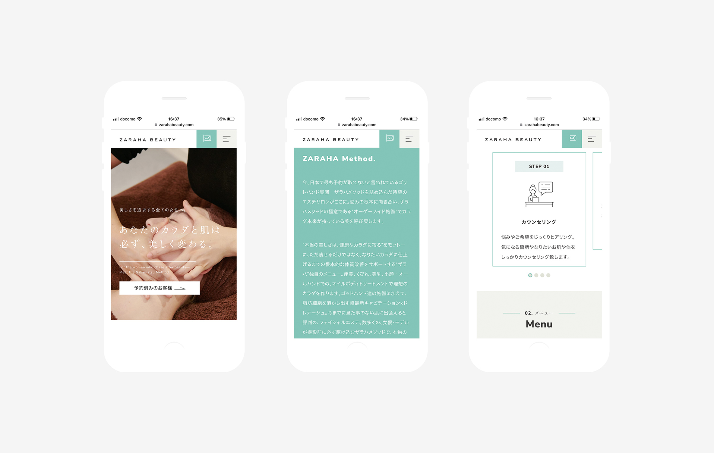 ボディフェイシャル・ヘッドマッサージ・腸マッサージなどのカラダと肌の全ての悩みを解決するフェイシャルエステ「zaraha beauty」のブランドサイト制作を担当しました。